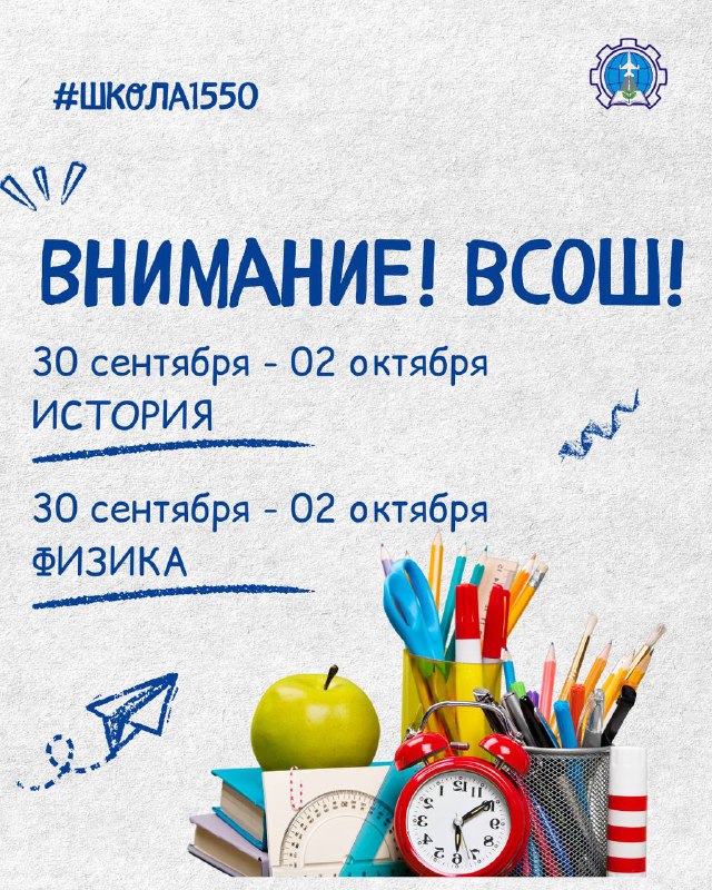 Приглашаем вас принять участие в школьном этапе Всероссийской олимпиады школьников по истории и математике!