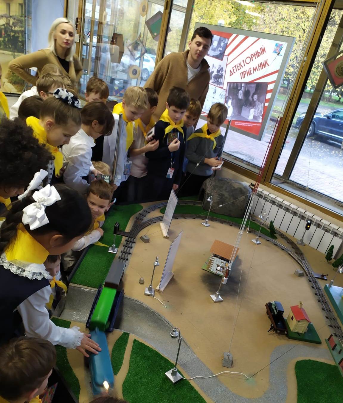 Здесь ребята не только слушали интересный рассказ экскурсовода, но ещё и смогли дотронуться до представленных экспонатов разных эпох и судеб: первых радиоприёмников, советских телевизоров с приставной увеличительной линзой, первых телемагнитол и многое другое!