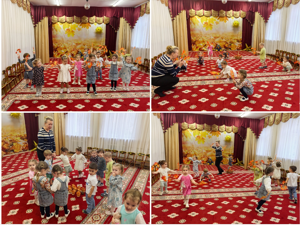 Дети с огромным удовольствием танцевали с листочками. Задорно играли в подвижные игры с Мишуткой. С азартом собирали грибочки, а потом поиграли с ними!