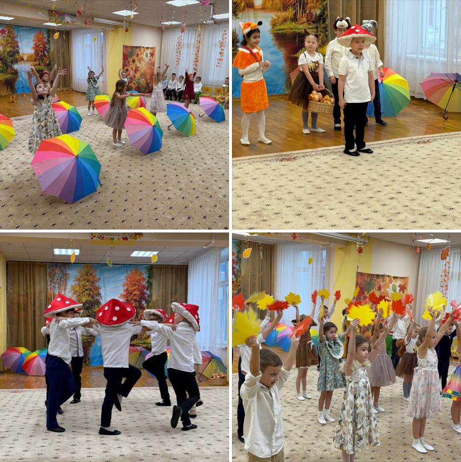 В гости к ребятам пришла Осень и ребята подарили ей волшебные музыкальные сюрпризы.. Она пела с детьми песни, танцевала. А инсценировка сказки была изюминкой праздника, где герои отправились в лес за грибами.