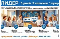 5 дней практики, которые прокачают уверенность, речь, командную работу и личную эффективность. Для старшеклассников, готовых действовать, брать ответственность и становиться лидерами.